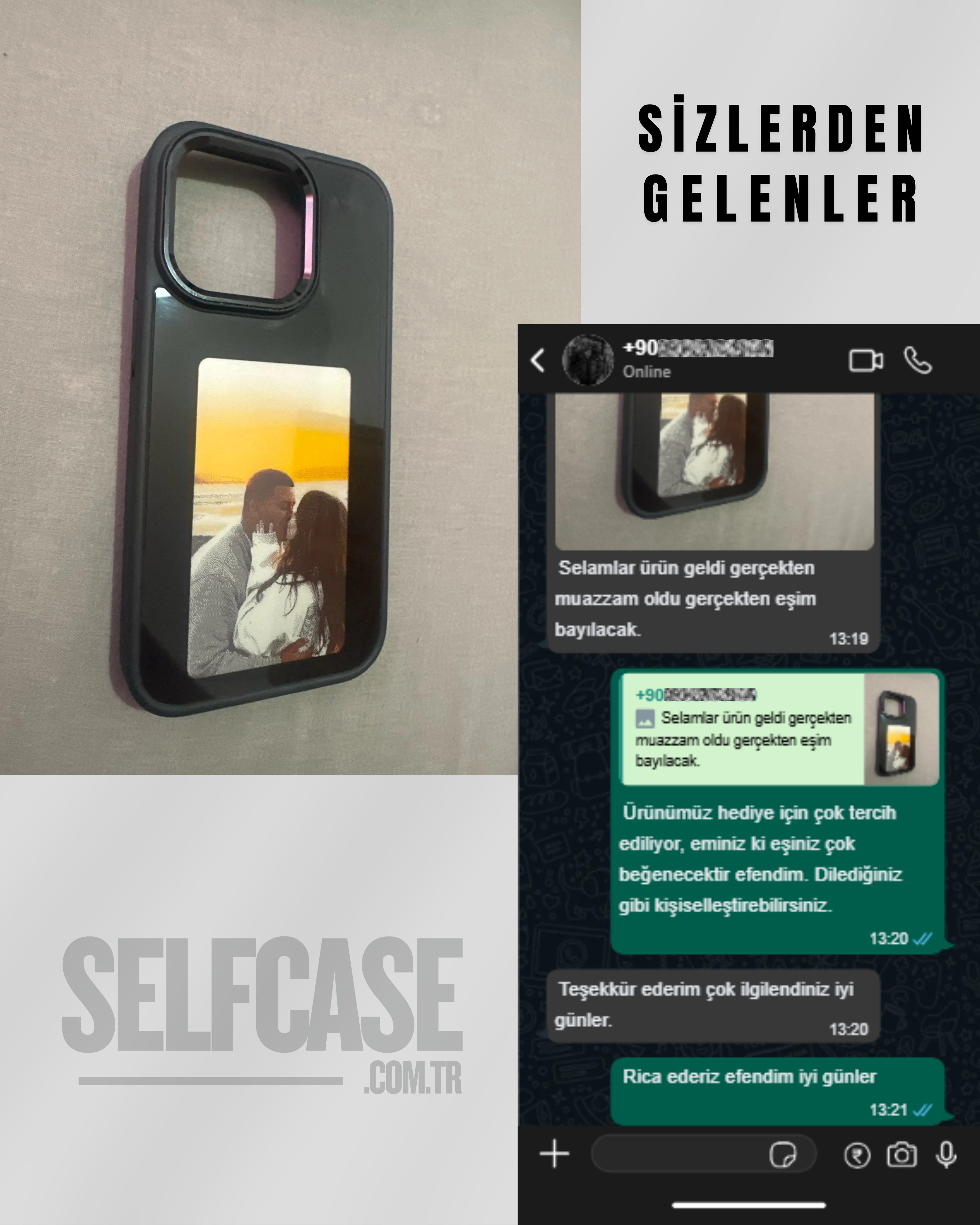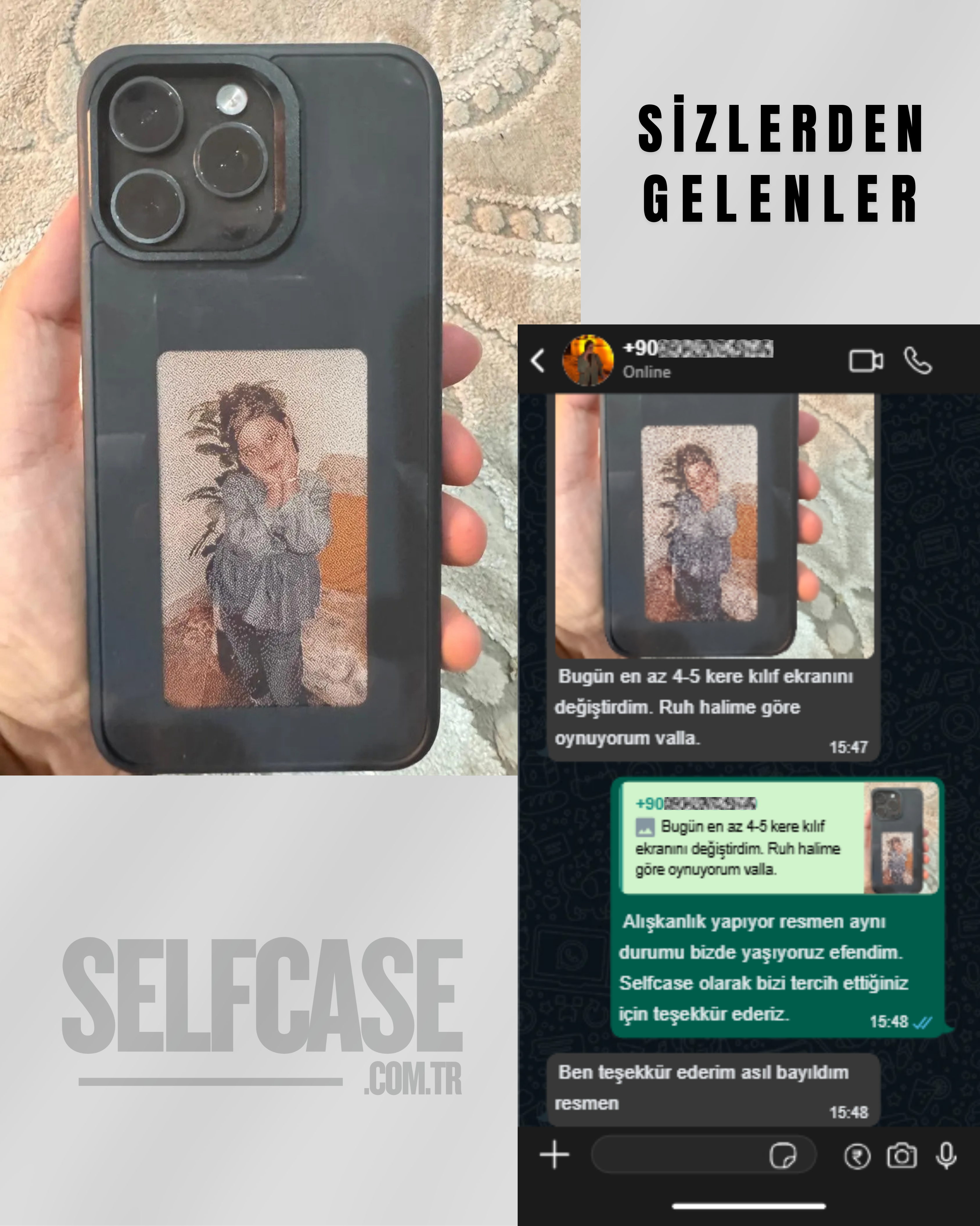 Akıllı Kılıfın arkasındaki ekran, galerinizden seçtiğiniz herhangi bir fotoğrafı anında telefon ekranınıza yansıtarak kişiselleştirilmiş bir deneyim sunar.